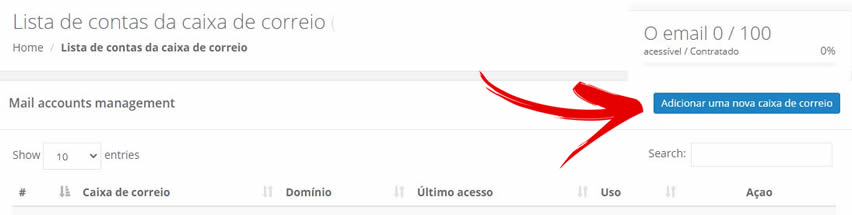 Na tela de lista dos e-mails que irá abrir, clique no botão de Adicionar uma nova conta